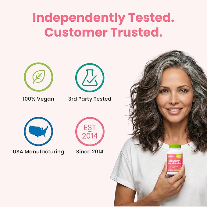 HairAnew Hair Growth Vitamins for Thicker Stronger Hair | Works for Women & Men All Hair Types | 11 Hair Vitamins & Ingredients | 5000mcg Biotin | Vegan | Independently Tested | 60 Capsules (3)
