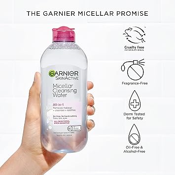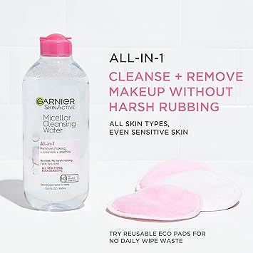 This all-in-1 micellar cleansing water is a facial cleanser and makeup remover that is surprisingly powerful, yet gentle on skin. This micellar water for all skin types effectively cleanses, removes makeup, and refreshes skin. Like a magnet, micelles capture and lift away dirt, oil and makeup without harsh rubbing. This makeup remover for normal skin cleanses to remove makeup and leaves skin with a matte and natural finish with no greasy residue. This Garnier micellar water is gentle on skin and can be used as an eye makeup remover. This gentle cleanser is oil-free, paraben-free, fragrance-free, sulfate-free and silicone-free. Suitable for all skin types, even sensitive. Based on Nielsen data for dollar and unit sales in food, drug and major discount retailers during the latest 52 week period ending 8/26/17.