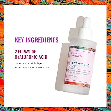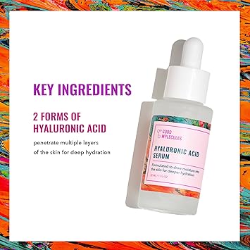 - DEEP, LONG LASTING HYDRATION: Experience the moisturizing power of Hyaluronic Acid! Embrace newfound confidence with the Good Molecules Hyaluronic Acid Serum made with powerful ingredients to help your skin maintain its radiant glow!