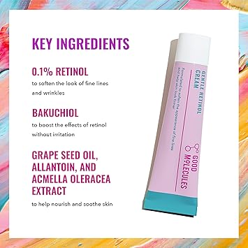 Good Molecules Gentle Retinol Cream - Retinol Night Cream to Minimize Appearance of Fine Lines & Wrinkles, Skin Tightening Recipe with Bakuchiol, Anti-Aging Skin Care For Face