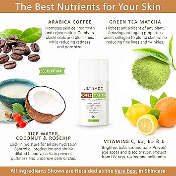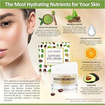 LILY SADO TEA+C™ Coffee & Matcha Caffeine EYE CREAM - Anti-aging Vegan Natural Eye Repair Moisturizer Lotion w Arabica Coffee Beans + Green Tea - Prevents Undereye Wrinkles, Puffiness, Dark Circles