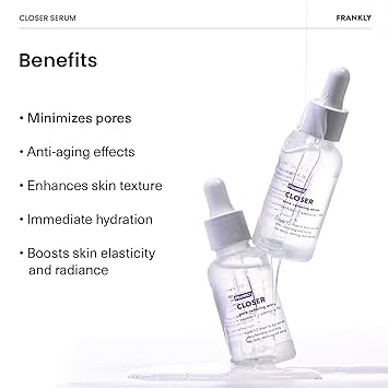 FRANKLY Closer Serum | Pore Minimizer Serum | 9 Peptides, Vegan Collagen, Adenosine, PHA | Korean Pore Minimizer for Glass Skin, Anti-Aging, Hydration, Elasticity | 1.01 fl oz