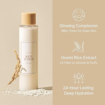 I'm from Rice Toner for Sensitive Skin, Rice Extract from Korea, Glow Essence with Niacinamide, Hydrating, Vegan, Alcohol Free, Fragrance Free, Peta Approved, K Beauty Toner, 5.07 Fl Oz