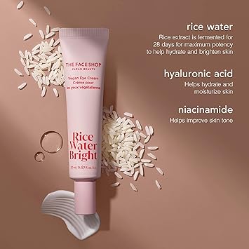 The Face Shop Rice Water Bright Vegan Eye Cream - Eye Cream for Dark Circles - Dark Circles Under Eye Treatment - Under Eye Brightener - Hydrating - Niacinamide - Hyaluronic Acid - Korean Skin Care