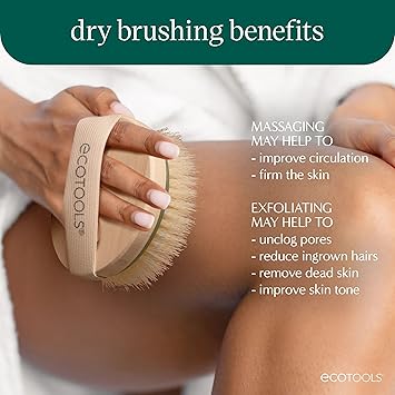 EcoTools Dry Body Brush, Cruelty-Free Bristles Exfoliate & Smooth Skin, Dry Brushing Removes Flaky Skin, May Help Improve Circulation & Tone, Eco-Friendly Skincare Tool, Vegan & Cruelty-Free, 1 Count