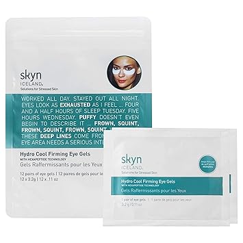 skyn ICELAND Hydro Cool Firming Under Eye Patches, Instant Cooling for Puffy, Tired Eyes with Peptides and Coenzyme Q10, 10 Minute Treatment, Vegan, All Skin Types, 4 Pairs