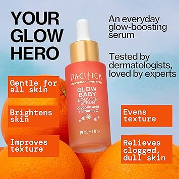 Pacifica Vitamin C Face Serum - Glow Baby Booster Facial Serum - Glycolic Acid Serum For Face - Dark Spot Corrector Anti Aging Brightening - Dermatologist Tested, Fragrance Free, Clean Skin Care Vegan