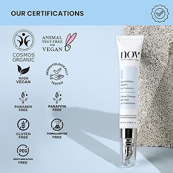 Developed with dermatologists, NOV Natural Organic Vegan's unique formula helps to smooth out expression lines, helps to restore elasticity and radiance, and helps to diminish dark circles and puffiness.