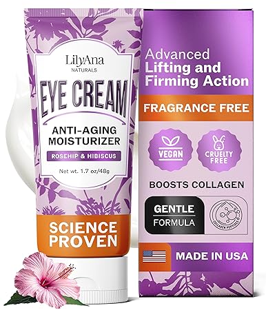 LilyAna Naturals Eye Cream for Dark Circles and Puffiness, Under Eye Cream for Wrinkles and Bags, Anti Aging - helps Improve Dryness; for Sensitive Skin - 1.7 oz - Made in USA