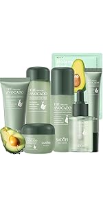 - 【Skincare Set】The Avocado facial skin care sets & kits Gift Box Set with Fwacial Cleanser, Face Serum, Face Cream, Eye Cream, Toner, moisturizing lotion, This skin care kit can replenish dry skin with water, reduce dry and moisturizing skin.