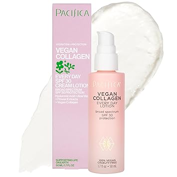 Pacifica Beauty Vegan Collagen SPF 30 Broad Spectrum Sunscreen Every Day Face Lotion, UVA/UVB Protection for All Skin Types, Lightweight, Moisturizing & Hydrating, Cruelty Free, White, 1.7 Fl Oz