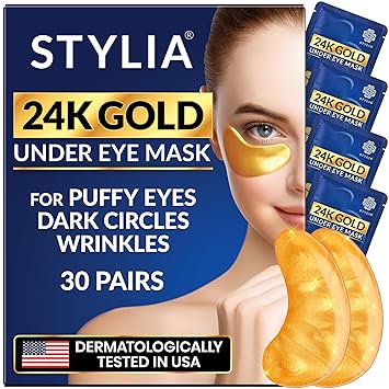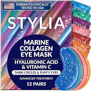 Stylia Collagen & Vitamin C Under Eye Patches for Puffy Eyes & Dark Circles - Depuffing, Hydrating & Firming Under Eye Mask with Hyaluronic Acid - Vegan, Cruelty-Free Skincare (30 Pairs)
