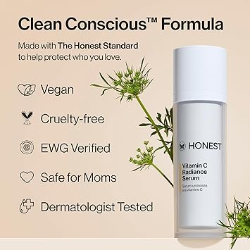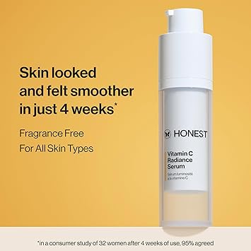 Honest Beauty Vitamin C Radiance Serum | Improves + Brightens Skin Tone and Complexion | Gentle for Sensitive Skin, Fragrance Free, Vegan | 1 fl oz