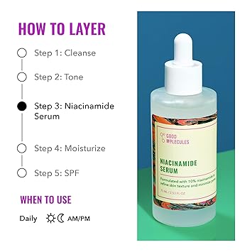 - BRIGHT AND HEALTHY COMPLEXION: Refine tone and improve texture while nourishing your skin! Embrace newfound confidence with the Good Molecules Niacinamide Serum!