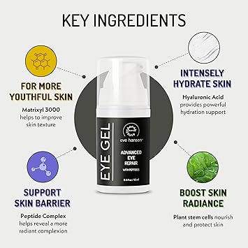 Eve Hansen Anti-Aging Eye Gel with Peptides | Under-Eye Cream With Plant Stem Cells, Hyaluronic Acid, Vitamin E | Cruelty-Free, Vegan, Made in USA .5 oz