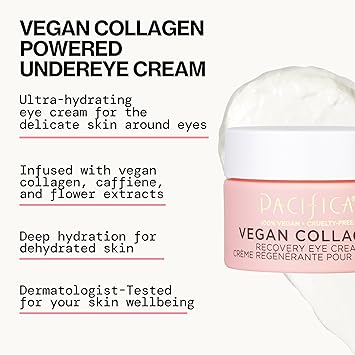 Pacifica Beauty, Vegan Collagen Overnight Recovery Eye & Face Cream, Hyaluronic Acid, Caffeine, Vitamin C & E, Hydrating & Moisturizing Skin Care for Aging and Dry Skin, 15ml - 0.5 fl oz