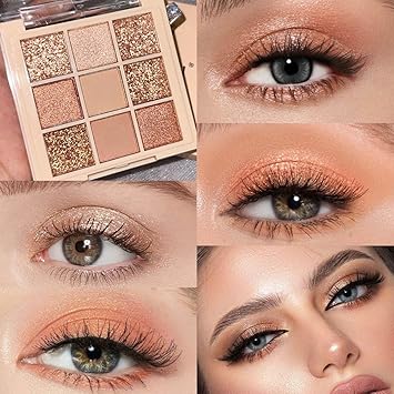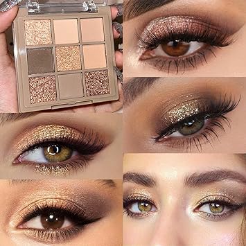 Eye Shadow Palette Makeup,9 Colors Gold Matte Shimmer Vegan Eyeshadow,Long Lasting Waterproof Naturing-Looking make up pallets for women,eyeshadow palette for brown blue eyes