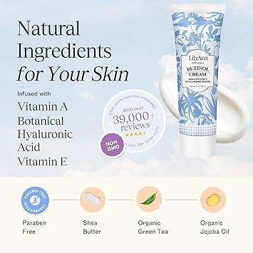 LilyAna Naturals Anti Aging Retinol Face Cream for Women - Wrinkle & Neck Cream for Firming, Retinol Moisturizer for Face with Hyaluronic Acid, Hydrating Night Cream for Fine Lines, Collagen Boost