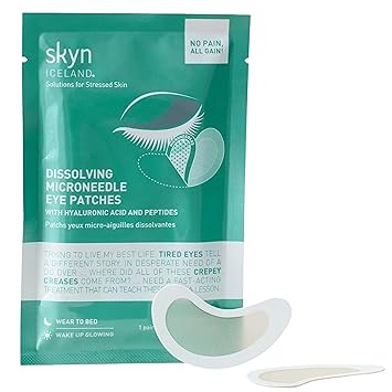 skyn ICELAND Dissolving Microneedle Under Eye Patches with 39% Hyaluronic Acid and Peptides, No Slip Overnight Eye Mask for Fine Lines, Wrinkles and Firming, Vegan, All Skin Types, 5 Pairs