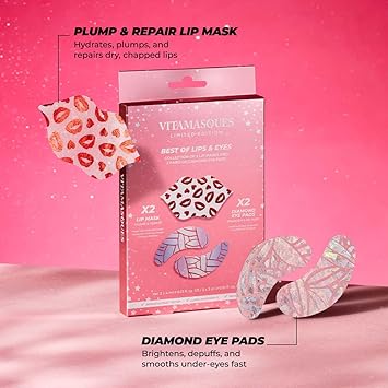 - Best of Lips and Eyes: Take care of the most delicate parts of your face while you relax. The Vitamasques Best of Lips and Eyes Kit is a collection of 2 lip masks and 2 pairs of diamond eye pads to help plump and repair your lips while brightening and de-puffing your under-eye area.