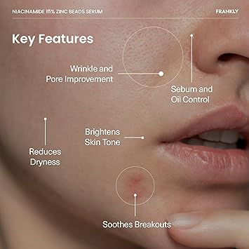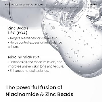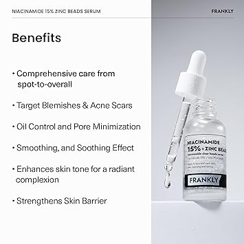 FRANKLY Niacinamide 15% + Zinc Bead Serum | High Dose Yet Gentle Skin Repair | Acne, Pore & Redness Control | Bead-to-Skin Delivery System for Fresh Niacinamide | Vegan Korean Skincare | 1.01 fl.oz