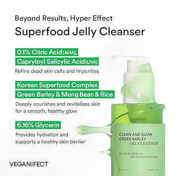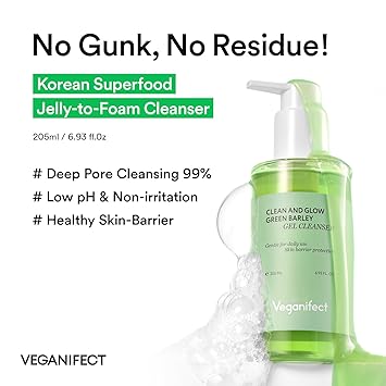 - PROVEN RESULTS - Clinical trials have demonstrated significant improvements with VEGANIFECT Green Barley Gel Cleanser: +122.6% Skin Texture Refinement, +199.19% Pore Impurity Reduction, +192% Inner Hydration Boost after just one use. Individual results may vary.