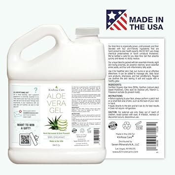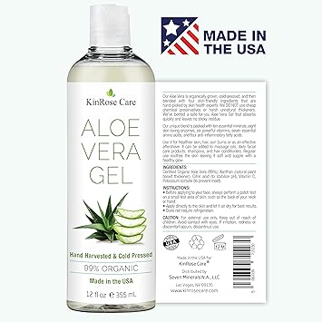 Experience the natural rejuvenation of KinRose Care's Organic Aloe Vera Gel, crafted to perfection with 100% pure cold-pressed aloe vera. Encounter the soothing relief as this alcohol-free gel gently restores moisture to sunburned skin and irritated scalps, making it an indispensable addition to your skin and hair care routine.