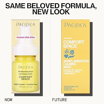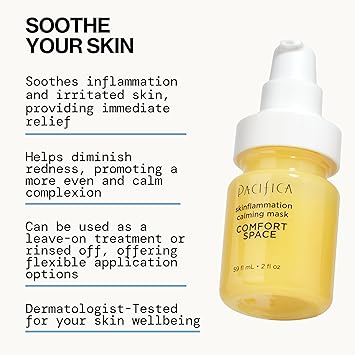 Give Your Skin a Comfort Space: Say goodbye to angry, inflamed skin and hello to a calm, happy complexion. Pacifica's Comfort Space Skin Inflammation Calming Face Mask is a gentle, restorative treatment designed for sensitive, redness-prone skin that needs some TLC. This creamy facial mask envelops stressed skin in soothing botanicals and calming actives for instant relief and ongoing recovery.