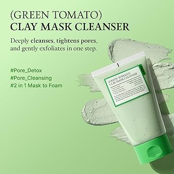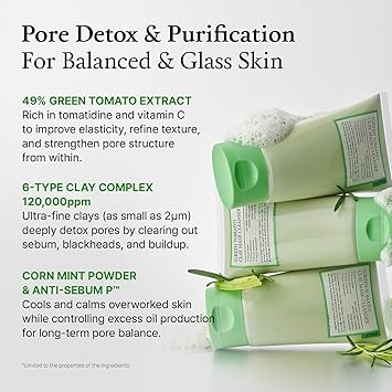 FULLY Green Tomato Pore Detox Clay Mask Cleanser, Pore Minimizing, Blackhead Care, Sebum Control, Exfoliation, Vegan, Face Wash, Sensitive Skin, Korean Skincare 4.05 fl.oz