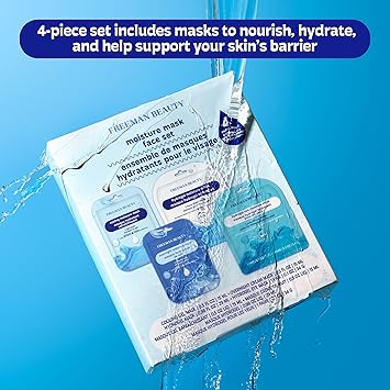 The Freeman Moisture Mask Face Set features 4 skincare essentials for nourishing dull, dry skin. This face mask set includes our Cooling Moisture Mask, Hydrogel Moisture Mask, Overnight Moisture Mask, and 1 pair of Hydrogel Eye Moisture Masks. These face masks include essential skincare ingredients for soft, supple skin. Our facial masks are perfect for travel and taking on-the-go to maintain hydrated, bouncy skin- wherever you are. Use before bed, on an airplane, or before applying makeup for a smooth, hydrated base. The hydrogel eye mask also helps to soothe dry, puffy eyes to keep your complexion youthful and glowing. We believe Me Time should be all the time. Built on the belief that me time is not a luxury- but a necessity, Freeman offers naturally derived, trusted masking solutions designed to hydrate and restore your skin so you can lead with you best face forward. As with all Freeman items, this face mask set is dermatologist tested, cruelty-free, and vegan. Since 1976, Freeman has created feel-good formulas that seriously work (without losing all the fun!). We believe skincare belongs to everyone and strive to democratize beauty with affordable products. In our minds, clear skin = a clear conscious. Our top priority is ensuring our products are efficacious and full of good-for-you ingredients. Our new formulas are always dermatologist tested, free of parabens, sulfates, phthalates and mineral oil. We love our furry friends, too, and are proudly cruelty-free and never test on animals. From breakouts and blemishes to sensitive and dull complexions, we’re here to educate you on how to take care of your unique skin. We believe skincare is more than a routine... It’s about feeling good from the inside out!