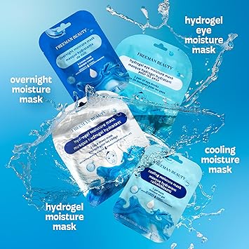 Freeman 4 Piece Moisture Mask Face Set, Hydrating Face Masks & Under Eye Mask For Puffy Eyes, Hydrogel Masks For Dry Skin, Hyaluronic Acid, Travel-Friendly, Vegan & Cruelty Free Skincare