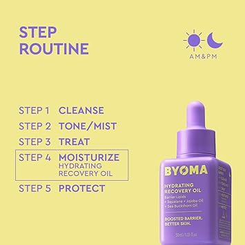 BYOMA Hydrating Recovery Oil is an ultra-lightweight oil that visibly illuminates, brightens, and balances skin to hydrate & restore the skin barrier