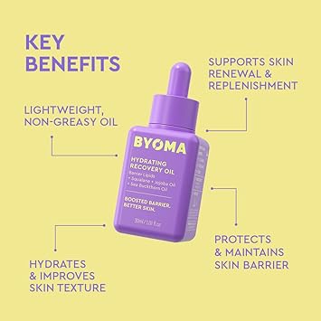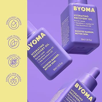 BYOMA Hydrating Recovery Oil - Luxury Face Oil with Squalane, Jojoba Oil & Seabuckthorn Oil - Instant Radiant and Glowy Skin - Barrier Repair Facial Oil - 1.01 fl. oz