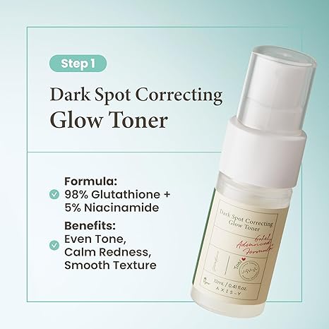 - Glow Toner: Contains 98% Glutathione and 5% Niacinamide to brighten and even skin tone while gently exfoliating to remove dead skin cells for a smoother, more refined-looking complexion.