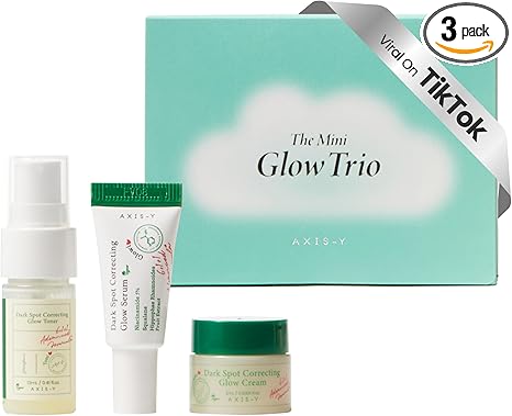 AXIS-Y The Mini Glow Trio Dark Spot Correcting Travel Size Gift Set - Toner 0.41 fl. oz., Serum 0.169 fl. oz., Cream 0.169 fl. oz. - Vegan Korean Skin Care