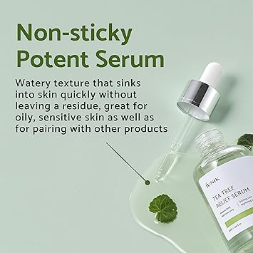 IUNIK Tea Tree Relief Vegan Serum for Acne-Prone Skin - Non-Sticky & Lightweight Facial Ampoule with Centella Asiatica for Soothing, Calming, and Balancing - Korean Skincare