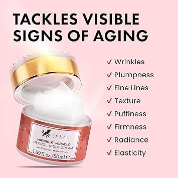 Eclat Skincare Retinol Night Cream - 2.5% Retinol & Hyaluronic Acid Face Moisturizer for Wrinkles, Fine Lines & Hydration - Firming Anti Aging Cream for Smooth, Radiant Skin 1.7 fl oz