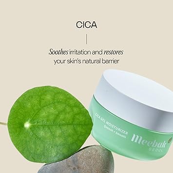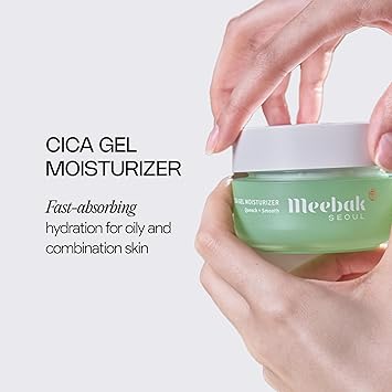 Meebak Cica Gel Face Moisturizer | Lightweight Hydrating Water Cream with Hyaluronic Acid & Vegan Collagen | Fast-Absorbing, Cooling Gel for All-Day Hydration & Glass Skin | Korean Skin Care