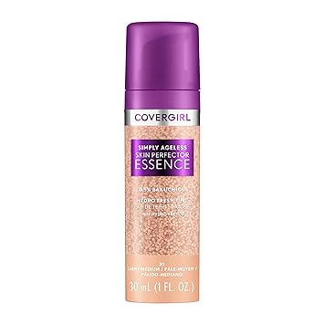 Covergirl Simply Ageless Skin Perfector Essence Foundation, 30 Light-Medium,Tinted Skincare Makeup Hybrid, Sheer Tint, Radiant Finish, Glowy Finish, Vegan Formula, 1.0oz