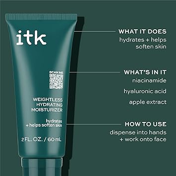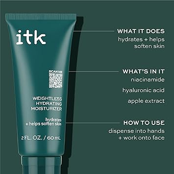 ITK Skincare Weightless Hydrating Face Moisturizer - Hydrates + Smoothes Skin - Niacinamide - Brighten Dark Spots - Hyaluronic Acid - Maintain Moisture Levels - Vitamin E-infused, 2 fl. oz
