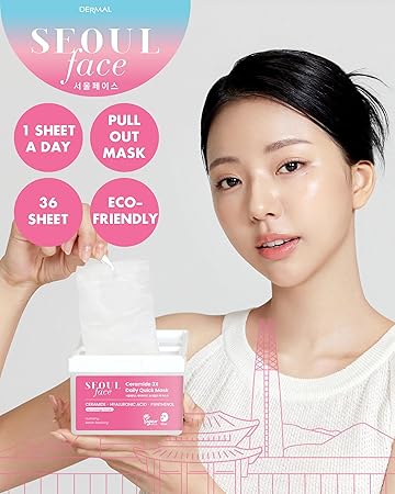 DERMAL Seoul Face Ceramide 3X Daily Quick Mask 36 Sheet - Korean Skincare Vegan Tencel Facial Masks - Intensive Moisturizing, Elasticity Mask Sheets with Hyaluronic Acid, Panthenol, Adenosine