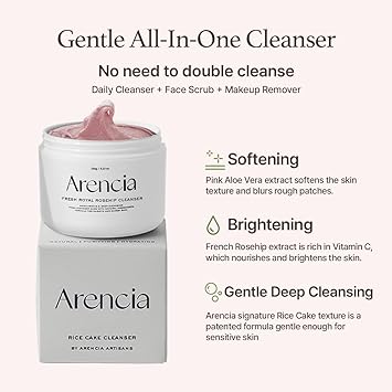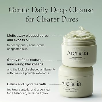 ARENCIA Korean Rice Mochi Face Cleanser & Daily Scrub - Moisturizing, Brightening & Deep-Cleansing - All Skin Types, Vegan, Organic - with Rice Powder, Rice Water & Green Tea (1.76oz)