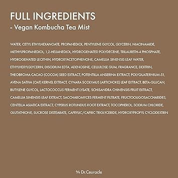 - YOUR FAVE, NOW IN MIST: Our fan-favorite Vegan Kombucha Tea Essence is now available as a refreshing, ultra-fine hydrating facial mist. Same deep hydration and skin-softening benefits, now in a lightweight, ultra-fine spray.