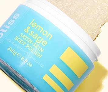 Bliss - Lemon & Sage Satin Skin Body Polish With Shea Butter & Coconut Oil Smoothing & Balancing Skincare for All Skin Types This luxe body polish features super-fine sugar crystals that exfoliate, then melt away, while a rich blend of coconut oil and jojoba oil leaves skin with a silky, satin shine. Honey and shea butter moisturize to help smooth even the roughest skin Dries quickly with no sticky residue so you’re fresh and ready-to-go; perfect for post-gym, travel or any time you need an instant refresh Supremely scented with our iconic Lemon & Sage fragrance for an energizing pick-me-up Key Ingredients: Sucrose: Fine sugar particles physically exfoliate as they deeply cleanse and draw moisture in, for glowing healthy skin Shea Butter: Rich in vitamin E, this intensive butter nourishes to combat dryness and flaking, quickly absorbing into the skin Coconut Oil: Deeply moisturizing, skin softening and naturally rejuvenating to dry skin Jojoba Oil: An organic essential oil rich in vitamins and minerals that helps moisturize and balance skin Sunflower Seed Oil: Rich in nutrients and antioxidants, this plant-based oil calms and improves skin’s ability to retain moisture Beeswax: A natural skin protectant that soothes, hydrates and forms a protective barrier from the environment Honey: Rich in natural sugars, it helps draw moisture to skin to create a hydrating veil This is Bliss We believe inner happiness leads to outward beauty. So, take a breath, press pause and give yourself and your skin a mega-boost. Our transforming skin wellness products feel and smell amazing, and do what they say they will. (Nope, not too much to ask.) This is Bliss. It’s All Good All products are PETA-certified, 100% cruelty-free and blissfully-free from parabens, phthalates, SLS, SLES and other bad stuff you don’t want on your skin or body.