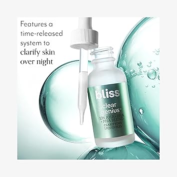 Bliss Clear Genius Clarifying Overnight Liquid Peel - 1 Fl Oz - Clear Pores & Exfoliate Skin - Non-Irritating - Clean - Vegan & Cruelty-Free