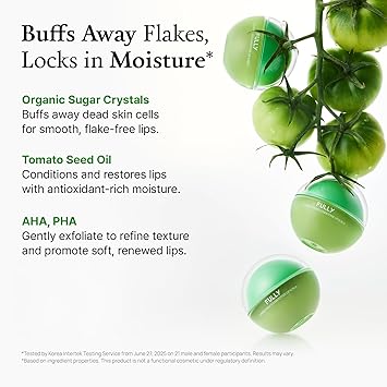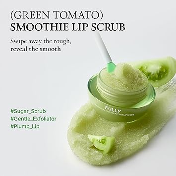 FULLY Green Tomato Smoothie Sugar Lip Scrub, Gentle Lip Exfoliator with Organic Sugar & Tomato Seed Oil for Smooth, Hydrated Lips, Vegan Daily Lip Polish for Dry, Flaky Lips, Korean Skincare, 0.42 oz