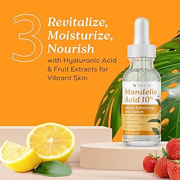 - Reveal Radiant Skin: a potent yet gentle 10% Mandelic Acid concentration exfoliates and promotes a smoother, clearer complexion. Perfect for revealing your skin's natural radiant complexion.