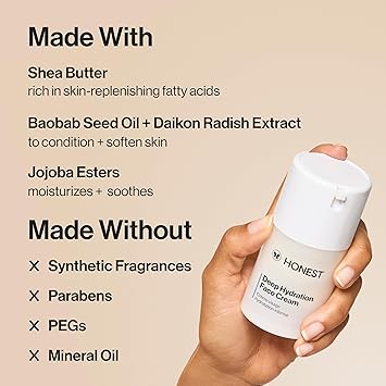 Honest Beauty Deep Hydration Face Cream for Dry Skin | Hydrates + Supports Natural Moisture Barrier | Hypoallergenic + Gentle for Sensitive Skin | 1.7 fl oz