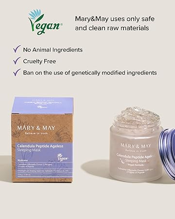 Mary&May Vegan Calendula Peptide Ageless Sleeping Mask - Overnight Hydration Face Gel Mask Korean Facial Mask - Soothing Acne, and Anti-Aging with Ceramide, Hyaluronic Acid, Cica, 3.7 fl.oz.