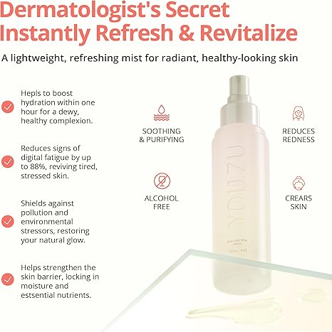 YOUZU Hypochlorous Acid Daily Refresh Spray - Gentle, pH-Balanced Cleanser & Toner - Alcohol-Free, Fragrance-Free, Vegan, Cruelty-Free - Hydrate & Soothe Sensitive Skin